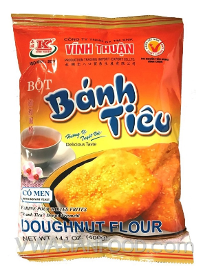 Bột bánh Tiêu Vĩnh Thuận 400g (đã có men)- Cho 1 gói men khô và 100g đường vào 280ml nước, khuấy cho tan, rồi đổ 400g bột bánh tiêu và hỗn hợp (nhớ chừa lại 02 muỗng canh để làm bột áo tráng mâm), nhồi đều khoảng 10 - 12 phút cho bột mịn dai.- Ủ bột trong 60 phút.- Nhồi lại lần nữa, chia bột thành từng phần nhỏ, nhúng bột vào mè, rồi cán thành hình tròn mỏng. trong lúc cán, bắc chảo dầu lên bếp, đổ dầu nhiều hơn ½ chảo, đun thật sôi (lửa vừa). cho bột đã cán vào chiên cho đến khi bánh phồng to và vàng đều thì vớt ra.- Hạn sử dụng: 12 tháng - Date luôn mới