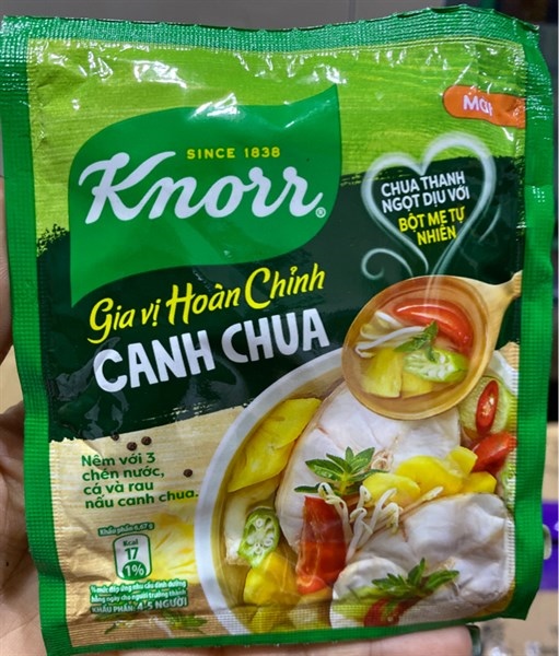Mỗi gói nhỏ gia vị hoàn chỉnh nấu canh chua Knorr 30g chứa đầy đủ các gia vị cần thiết, được phối trộn với một tỷ lệ hoàn hảo, gia vị nêm sẵn Knorr giúp cho bạn có thể nấu được món canh ngon đúng điệu đãi cả nhà. Sản phẩm là loại gia vị nêm sẵn thiết yếu không thể thiếu cho mọi bữa ăn ngon.